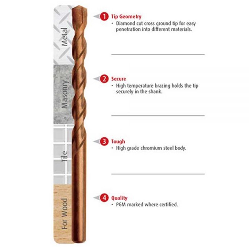 For the rotary driving of aerated and non-reinforced concrete, masonry, ceramic tiles, plastic, wood, aluminium and steel sheets and profiles.